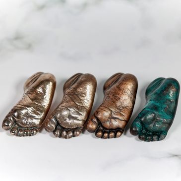 Forged from the precious metal, solid bronze in a range of finishes: Highly polished, Gentle polish, Patina & Verdigris. These casts do not compromise on intricate details and are incredibly tactile and beautiful. The ultimate baby keepsake.